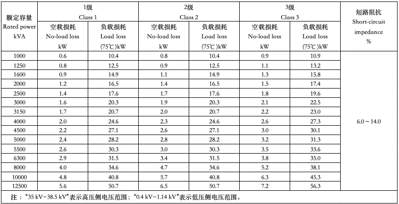 能效等级/Energy Efficiency Class 35 kV~38.5 kV/0.4 kV~1.14 kV